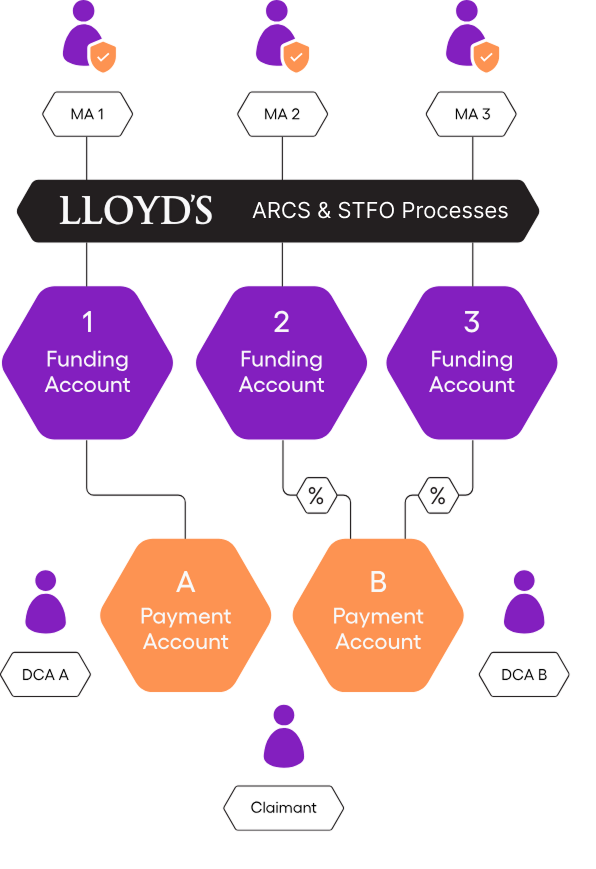 DCA approves a payment; the liquidity is pulled from the MA funding account(s) depending on the percentage split on the binder.